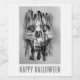 Happy Halloween text can be customized by you. Distressed human skull photo. Black and white.