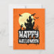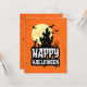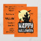 Gute Halloween Textil-Illustration mit Spuk Haus-, Friedhof- und Fledermausdekoration auf grunge-orangefarbenem Hintergrund.