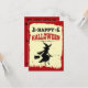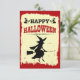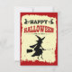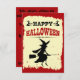 Happy Halloween Illustration mit Hexendekoration in grunem rotem Rahmen