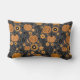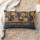 A cute and pretty Happy Halloween lumbar pillow featuring pumpkin and floral patterns in orange and black, perfect for families looking for fun and modern ways to celebrate Halloween this fall.