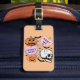 Farbenfrohe Halloween-Illustration mit Schädeln, Fledermäusen, Sternen, Kürbis und Bonbonherzen mit "Spooky babe", "Hunt me" und "Hot Ghoul" Textdesigns