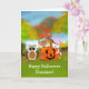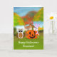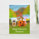 Diese süße Halbwaschkarte verfügt über einen Chipmuck, Kaninchen und eine Schüssel mit einem Grasshopper, der zusammen einen Jack O'Lantern zu Halloween schneidet, eine perfekte Karte für einen Enkel.