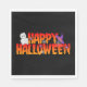 Halloween-Papierserviette mit einem grafischen Bild mit den Worten "Happy Halloween" und Bildern von Mumie, Spinnen, Spinnennetzen und einem Hexenhut, der für ein Halloween-Party perfekt ist.