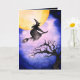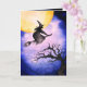 Wunderschöne Aquarell und Skizze Stil Happy Halloween Karte. Fliegende schwarze Hexe, großer goldener Mond und spukiger alter Baum. Innen kann die Nachricht geändert werden: "Witching" You A Happy Halloween". Auch in der Karte enthaltene Entwurfsarbeiten.