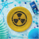 Strahlungswarnung. Störendes radioaktives Symbol auf einem Imitat grunzen Metalloberfläche - korrodiert. Sie können das Symbol für radioaktive Strahlung in eine gewünschte Position verschieben oder Text hinzufügen, indem Sie einfach auf die Schaltfläche Bearbeiten klicken. Personalisieren Sie sich selbst oder machen Sie ein großartiges Geschenk.