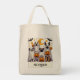 Diese lustige Halloween-Urlaubssacktasche enthält vier niedliche Hunde, die in Geisterkostümen gekleidet sind und Jack-o-Laternen tragen. Personalisieren Sie Ihre Auswahl an speziellen Texten auf der Vorder- und Rückseite.