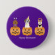 Illustration von drei Hunden in Kürbissen in Halloween-Kleidung gekleidet.