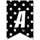 Feiern Sie mit diesem glücklichen Halloween Banner! Die Fahnen dieses Banners wechseln sich ab zwischen schwarz mit weißen Polka-Punkten, und schwarz-weiß Streifen, mit einem fett weißen Schatten-Schriftart, der die Buchstaben wirklich zum Pop macht!