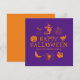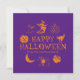 Frohe Halloween individuelle Name Grußkarte, Einladung lila und orange mit anpassbarer Text-Kürbislaterne, Kürbis, Hexe, Geist, Schädel, Mond, Schwarzkatze