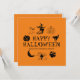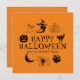 Frohe Halloween individuelle Name Grußkarte, Einladung schwarz und orange mit anpassbarer Text-Kürbislaterne, Kürbis, Hexe, Geist, Schädel, Mond, Schwarzkatze
