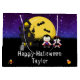 Diese lustige und spukhafte Geschenktasche kann mit einem Namen oder Titel, wie Tochter, Enkelin, Nichte, Freund etc. personalisiert werden. Es verfügt über niedliche Vampire neben einem gekreuzten Spuk Haus. Im Hintergrund ist ein Vollmond mit Fledermäusen und ein lila Nachthimmel mit Sternen. Das ist perfekt zu Halloween.