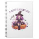 Happy Halloween Lila Hexenkürbis & Fledermäuse Notizblock