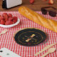 Niedliches Monster mit Spiegelbild auf diesem Teller verleiht dem Halloween-Party einen gewissen Charme. Sie können dieses Design auf vielen Party-Produkten in der Regel auf der Rückseite sehen. Karo der Sammlung für besser koordinierte Artikel.