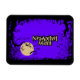 Happy halloween mit lila Hintergrund, gelbem Mond, Bäumen, Fledermäusen