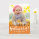 The Happy Halloween Family Foto Card uses a hand written white script typography. The name, year and foto can be replaced on the Halloween Foto Card.