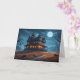 Diese Karte verfügt über ein spoktakuläres Spuk Haus nach Einbruch der Dunkelheit und unter Vollmond. Diese Grußkarte wäre ideal für Freunde, Familie und Mitarbeiter.