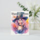 Diese super lebendige Postkarte zeigt eine Darstellung einer sachkundigen Hexe. Diese Postkarte würde ein wirklich reizvolles Halloween-Gruß für die besten Freunde und Familie machen.