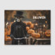 Ein Skelett mit einem Fahrrad zwischen niedlichen Halloween Kürbis und Laternen. Happy Halloween Magnetkarte