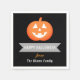 Stilvolle, benutzerdefinierte "Happy Halloween" Party-Servietten mit einem lächelnden Jack-oder-Laternen Kürbis, benutzerdefinierte Text, die Sie für Ihren Urlaub / Party mit einem Familiennamen personalisieren können, und klassische Orange, Schwarz, Grau und Weiß Farben.