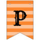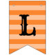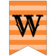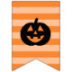 This festive "Happy Halloween!" holiday bunting banner features orange, purple, green, and black colors, patterned stripes and polka dots, decorative text, and a smiling jack-o-lantern pumpkin accent.