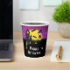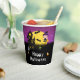 Diese lustige und spukhafte Papiertasse besticht durch eine niedliche Hexe neben einem gekräuselten Spuk Haus. Im Hintergrund ist ein Vollmond mit Fledermäusen und ein lila Nachthimmel mit Sternen. Das ist perfekt zu Halloween.