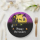 Dieser lustige und spukhafte Teller besticht durch eine niedliche Hexe neben einem gekräuselten Spuk Haus. Im Hintergrund ist ein Vollmond mit Fledermäusen und ein lila Nachthimmel mit Sternen. Das ist perfekt für ein Halloween-Party.