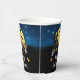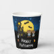 Dieser lustige und spukhafte Papierbecher zeigt niedliche Werwölfe neben einem gekräuselten Spuk Haus. Im Hintergrund ist ein Vollmond mit Fledermäusen und ein blauer Nachthimmel mit Sternen. Das ist perfekt zu Halloween.