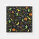 Niedliche, lustige und spukhafte Papierservietten zu Halloween. Schwarzer Hintergrund mit einem bunten "Happy Halloween", Kürbis, Geist, Hexe, Mond, schwarzes Katzenmuster. Wunderbar für jedes Halloween-Party oder jede Ansammlung. Karo unsere passenden Papiertassen und Papier-Teller!