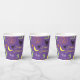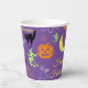 Karo diese spukhaften und niedlichen gemusterten Papiertassen zu Halloween aus. Lila Hintergrund mit einem bunten "Happy Halloween", Kürbis, Geist, Hexe, Mond und schwarzen Katzenmuster. Sie sind großartig für jedes Halloween-Party oder jede Ansammlung. Sehen Sie sich auch unsere passenden Teller und Servietten an!