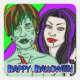 Pop Art Vampire und Zombie Limone grün und lila Happy Halloween Aufkleber.