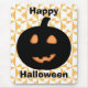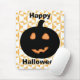 Glückliche Halloween-Jack-o-Laterne sitzt auf einem kundenspezifischen, digital gestalteten Muster, das abstrakte Pinradformen streaming.
