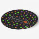 Niedliche lila, orangefarbene und limatengrüne Kürbis gemusterte Halloween-Party Teller.