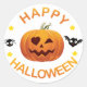 Niedliche Halloween Kürbis ist Set im Kreis von glücklichen Halloween und eine niedliche Spinne, Fledermaus und Sterne. Dies ist eine digitale Abbildung.