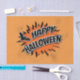 Happy Halloween Comic Stil Illustration mit Text-Design, Fledermaus und Sternendekoration auf halftone Hintergrund. Es ist möglich, die Hintergrundfarbe zu ändern und das Design mit Ihrer Wahl zu ergänzen.