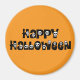 Orange Happy Halloween Magnet mit kleinen weißen Schädeln.