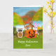Diese süße Halbwaschkarte verfügt über einen Chipmuck, Kaninchen und eine Schüssel mit einem Grasshopper, der zusammen einen Jack O'Lantern zu Halloween schneidet, eine perfekte Karte für einen Sohn.