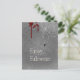 Eine beängstigende Halloween-Illustration mit einem Spinnennetz mit einer hängenden, schwarzen Spinne, blauen Tropfen und einem "glücklichen Halloween"-Schriftzeichen mit Knochen auf einem Grabstein.