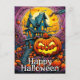 Dieses einmalige Halloween-Postkartenspiel zeigt ein Spuk Haus und einen beleuchtenden Kürbis. Bitte passen Sie alle verfügbaren Optionen nach Ihren Wünschen an.