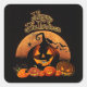 Happy Halloween Text mit einem Mond, Kürbis, Katzen, Fledermäuse, Spinnen und Web-Aufkleber
