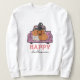 Happy Halloween T - Shirt Moderne Familienmodelle, die Halloween Shirt-Design mit "Happy Halloween"-Text in orangefarbenen und weißen Schriften mit einem kleinen Geisterakzent verbinden. Bestellen Sie für jedes Mitglied Ihrer Crew.