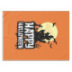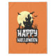Happy Halloween Textil Illustration mit Spuk Haus-, Friedhof- und Fledermausdekoration auf orangefarbenem Hintergrund bei Vollmond