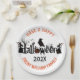 Elegantes Happy Halloween kreatives Typografie Konzept Design in schwarz und orange. Halloween-Briefe werden aus Halloween-Bildern erstellt. Spooky Bäume, schwarzer Rabe, schwarze Fledermäuse.