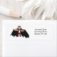 Halloween-Adressetikett mit meinem Kunstwerk eines kleinen Vampirzeichens mit einem schwarzen Kap mit dem Text "Happy Halloween!"