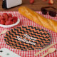 Diese schwarze Papiertafel mit Zickzack orangefarbenem und schwarzem Design hat eine glückliche Halloween-Nachricht für Ihre Party. Passen Sie mit Ihrer eigenen Nachricht an und suchen Sie in meinem Shop nach "halloween", um Produkte zu sehen, die koordinieren.