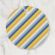 Happy Hanukkah blau und weiß bis von leere niedlichen modernen Hanukkah Gefallen Tags. Vollständig anpassbarer blauer Text, erhältlich in Kraftpapier oder Weißpapier, diagonal blaue goldgelbe und creme Streifen Muster zurück.