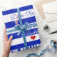Happy Hanukkah Blue White Striping Muster Herz Geschenkpapier