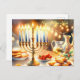 Hanukkah Aquarellbild. Ein wunderschön gestaltetes Set für eine festliche Feier mit einer traditionellen Menorah mit Kerzen. Das weiche, warme Licht, die Dekoration der Ferien verleiht dem Ganzen eine Touch Beifall. Warme Lichter schaffen eine gemütliche und einladende Atmosphäre.