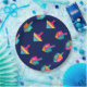Happy Hanukkah Party Jewish Holiday decorative Dreidel. Hanukkah spinning top. Jewish Holiday Chanukahs Decoration with traditional Chanukah decorative toys, Hebrew letters - Navy Blue color, colorful dreidels Chanukah wooden toys (spinning top), star of David and neon blue glowing lights illustration. Hanukkah Festival of lights Event Decoration. Jerusalem, Israel. Crafts & Party Supplies > Party Supplies > Tableware > Paper & Party Plates Judaica Modern Design. For a festive Hanukkah 2025 table setting.