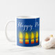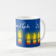 Symbolisieren Sie das Wunder von Hanukkah: Unser Design zeigt die neun Kerzen, symbolisiert das Wunder von Hanukkah. Das helle Flammen-Set gegen das tiefe königsblaue ist eine visuelle Darstellung der Freude und des Lichts, das dieser Urlaub mit sich bringt. Acht Kerzen symbolisieren die Anzahl der Tage, an denen die Laterne des Tempels strahlte; die neunte, die Shamash, ist eine Helferkerze, mit der die anderen beleuchtet werden. Passen Sie die Tasse mit dem laufenden Jahr an.