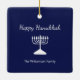 Happy Hanukkah Menorah Simple Blue White Keramikornament